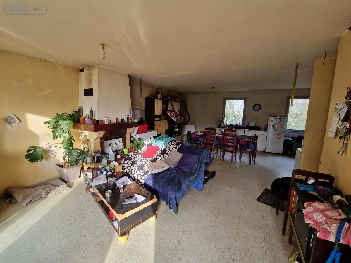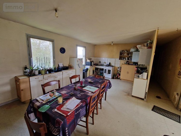 - au rez-de-chaussée : une cuisine ouverte sur le salon/séjour avec une cheminée, un couloir desservant trois chambres, une salle de bain et un wc.