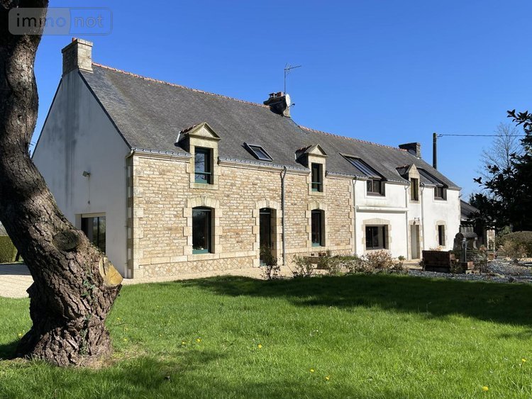 MAISON A VENDRE A LA CHAPELLE NEUVE 56500 MORBIHAN A 30 minutes du Golfe du Morbihan et à distance raisonnable des villes de Vannes, Lorient et Pontivy, cette remarquable propriété de charme de plus de 13 hectares offre un cadre de vie exceptionnel, alliant calme, espace et polyvalence. Cette maison en pierre typique séduit dès le rez-de-chaussée par sa cuisine aménagée et équipée agrémentée d'une cheminée barbecue, ainsi que par son lumineux séjour-salon doté d'une cheminée insert. Une chambre avec salle d'eau privative, une buanderie et plusieurs espaces de service s'y trouvent également. À l'étage, 4 chambres dont une vaste pièce de 25 m² divisible selon les besoins, une suite parentale avec dressing et salle de bain privative dotée d'une baignoire balnéo et douche, ainsi qu'une salle de bain indépendante. Une salle de réunion de 66 m² baignée de lumière, accessible de façon indépendante, ouvre un large champ de possibilités : activité libérale, chambres d'hôtes, télétravail ou espace associatif. Les extérieurs sont à la hauteur de ce cadre d'exception : terres libres en partie clôturées idéales pour accueillir des chevaux, deux boxes, deux hangars, un garage pouvant abriter jusqu'à quatre véhicules, un atelier, une terrasse au sud, un agréable jardin arboré et un puits. Petit bois de douglas. À deux kilomètres du parc d'attractions Kingoland, et la voie express RENNES-QUIMPER, cette propriété rare conjugue intimité, nature et accessibilité pour un projet de vie ambitieux. Possibilité d'acquérir moins de terres. Seulement chez vos Notaires.