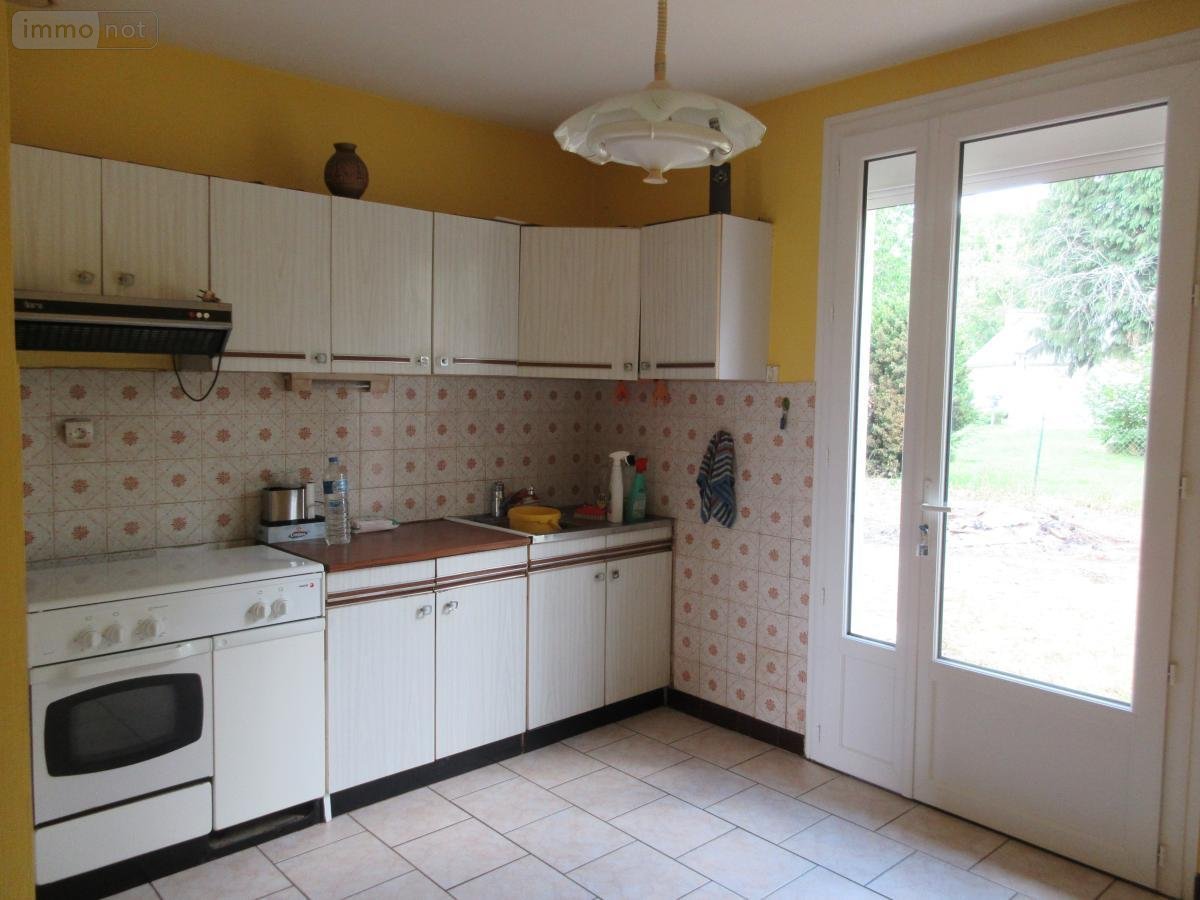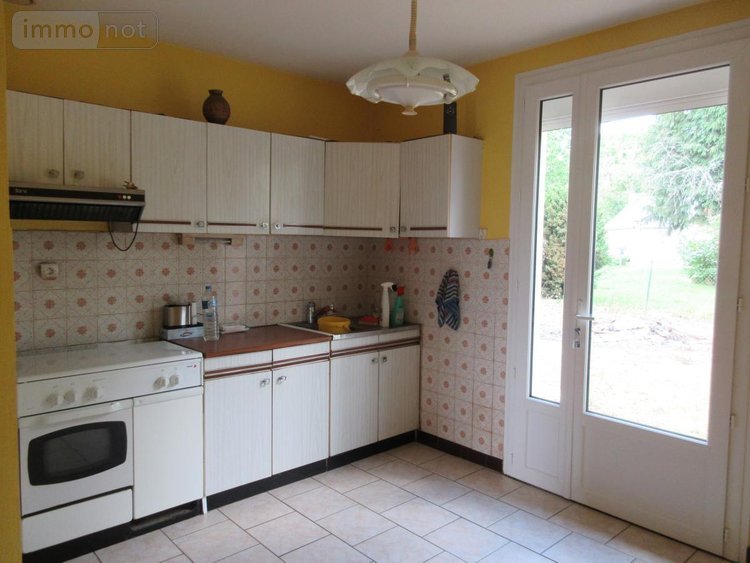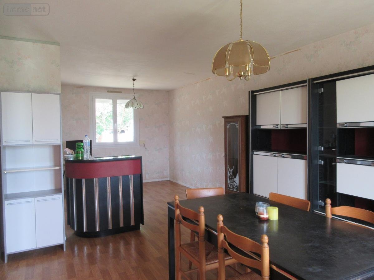 maison de plain-pied composée d'une entrée, cellier, une cuisine aménagée, un salon/salle à manger, trois chambres, salle de douche, w-c.