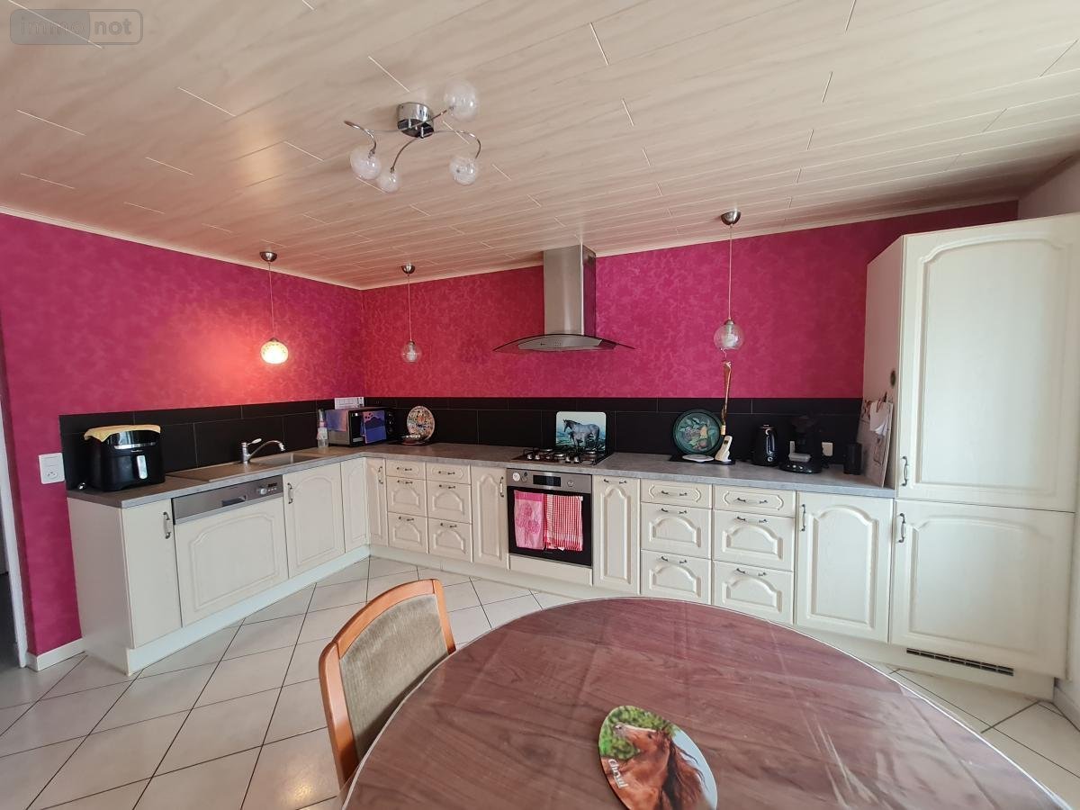 = au rez-de-chaussée : salle à manger avec cheminée et insert ouverte sur une vaste cuisine aménagée, salon, une arrière cuisine/buanderie, dégagement, un WC, une salle d'eau, et deux chambres