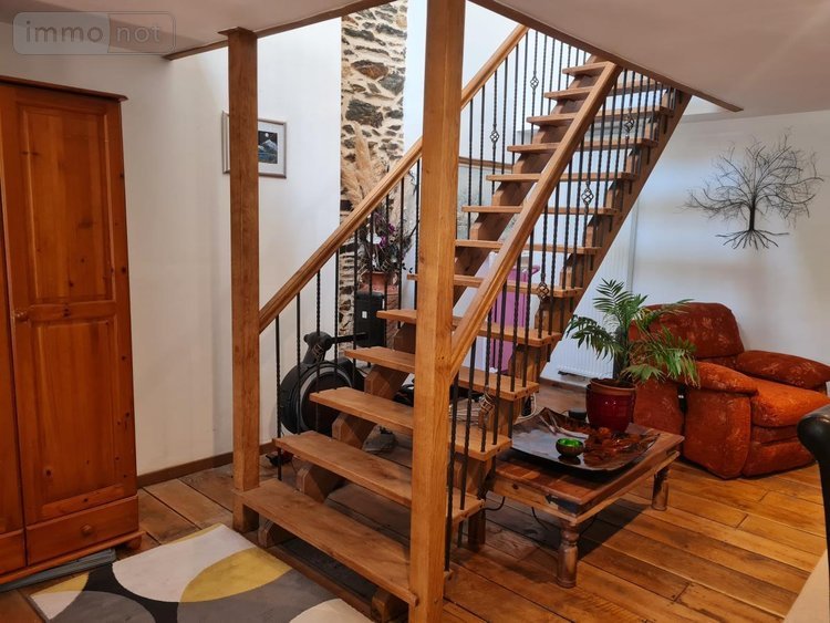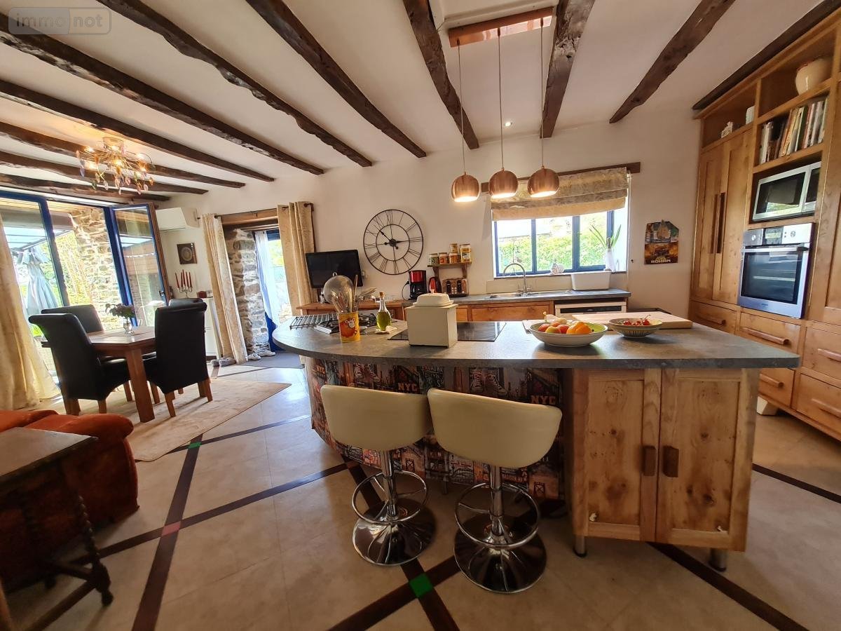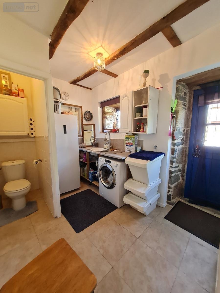 = Au rez-de-chaussée : une entrée, un séjour avec poêle à bois, une cuisine aménagée avec accès terrasse couverte, une buanderie avec wc