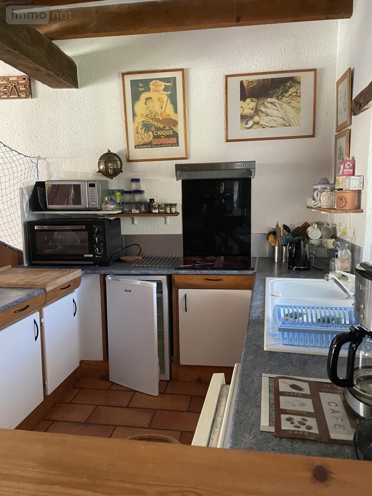 une belle pièce de vie avec cheminée donnant accès à la terrasse et au jardin, cuisine aménagée et équipée, wc, salle d'eau, buanderie / cuisine d'été. Une extension est possible au rez-de-chaussée afin de prévoir une chambre.