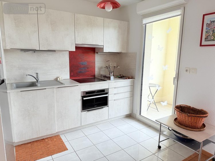 . Entrée avec placard desservant un séjour avec coin cuisine aménagée et équipée, balcon de 8,60 m²