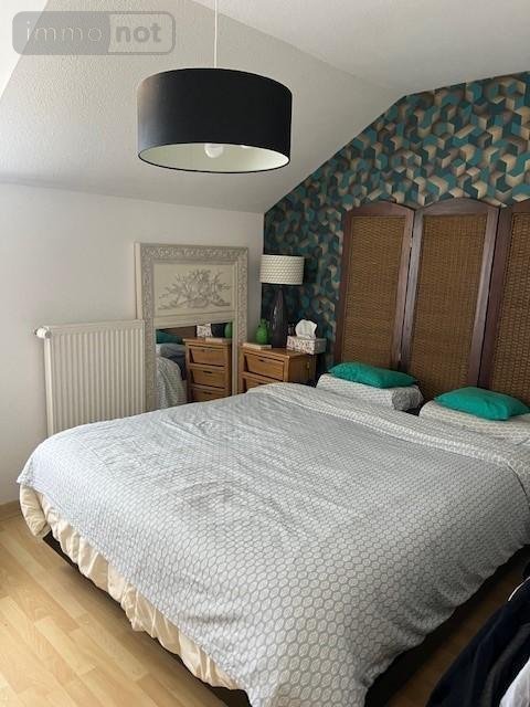 A l'étage : deux chambres dont une avec placard, salle de bains.