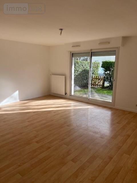 Petite résidence, appartement lumineux de type T3, situé au rez-de-chaussée : entrée avec placard, séjour avec coin cuisine donnant sur une terrasse et un jardinet, deux chambres dont une avec placard, salle de bains, wc.