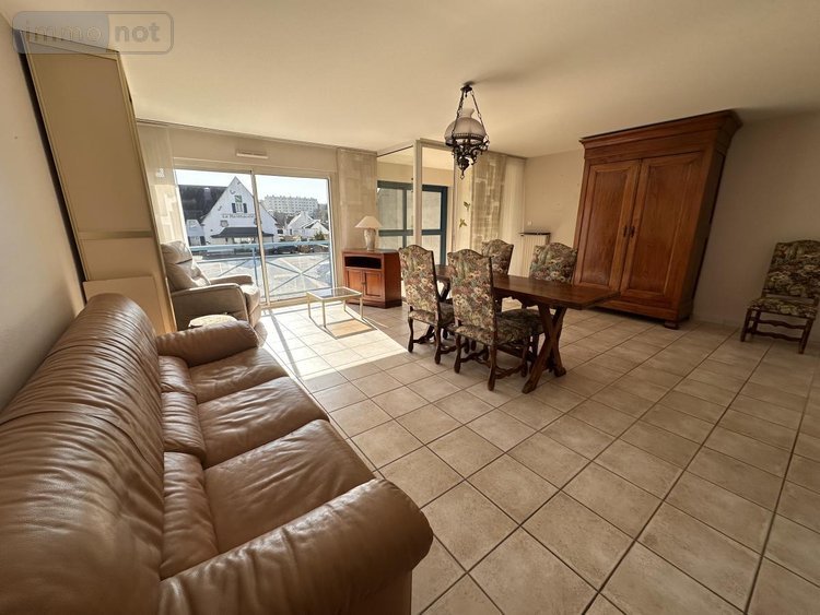 . entrée avec placard, séjour-salon avec loggia fermée, cuisine équipée, 1 chambre/bureau, 2 chambres avec placard, WC, salle d'eau