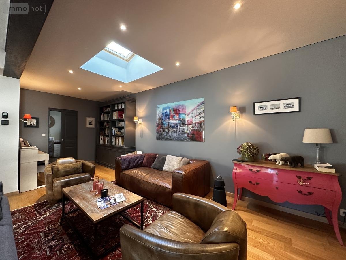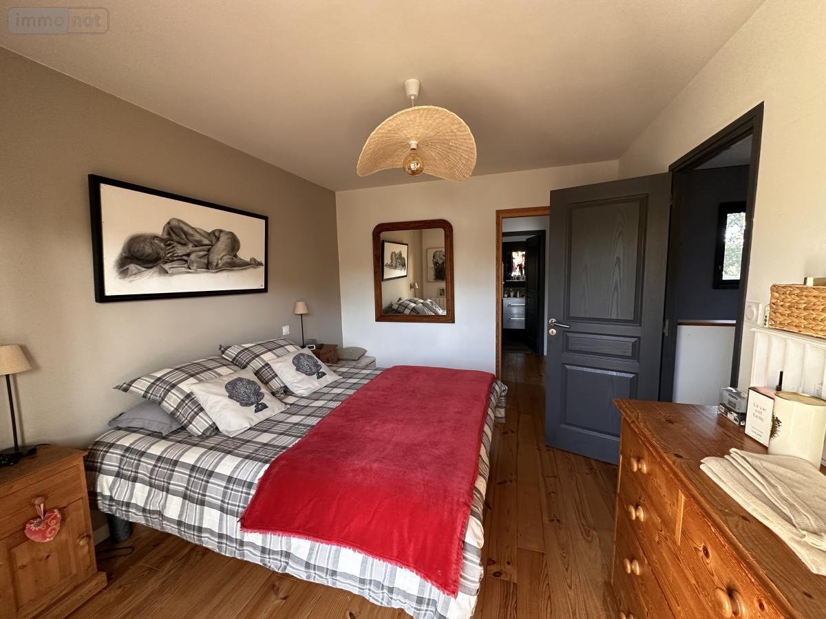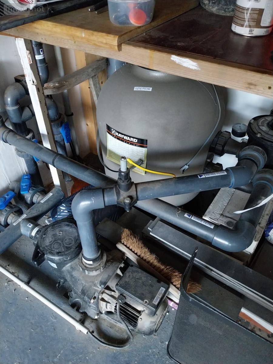 A VENDRE (56) ST AVE PROCHE VANNES CLINIQUE et GARE : JOLIE MAISON D'ARCHITECTE DE 2017, SUR TERRAIN CLOS DE 405 m² AVEC PISCINE CHAUFFEE: RDC : Entrée sur très belle pièce de vie (séjour-salon, coin bibliothèque) avec poêle à granulés, le tout donnant sur une terrasse en bois, couverte + store banne, jardin clos de murs , cuisine am-équipée donnant sur terrasse, wc/lave-mains, bureau, salon télévision, dressing, 1 belle chambre/salle d'eau privative et sortie terrasse - ETAGE : mezzanine à usage de salle de jeux avec grande baie donnant sur terrasse, 1 ch/parquet/dressing/salle d'eau/wc (accès terrasse), 1 ch/parquet/placard (accès terrasse), 1 ch/parquet/placard, wc, salle d'eau GARAGE AVEC COIN ATELIER ET CAVE A VIN ETANCHE EN SOUS-SOL