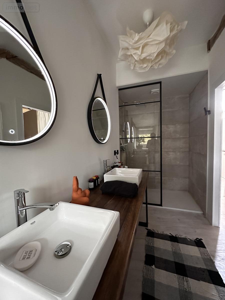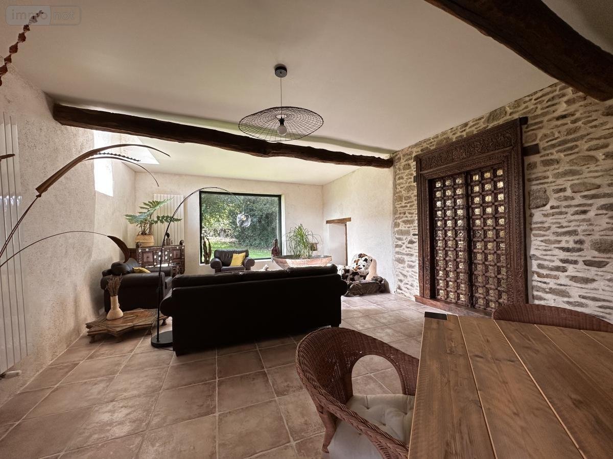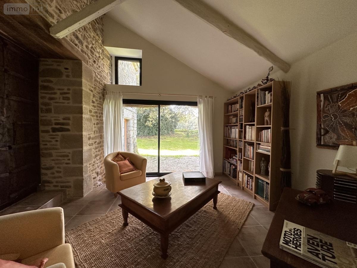 VANNES (56) A VENDRE A 10 MIN DE VANNES, EN CAMPAGNE, BELLE LONGERE RENOVEE AVEC GOUT DU XVIIIEME SIECLE, AVEC DEPENDANCES SUR BEAU TERRAIN DE 3 173 M² : RDC : Hall d'entrée, jardin d'hiver avec coin douche, buanderie avec point d'eau, petit cellier, wc/lave-mains, spacieuse cuisine aménagée-équipée avec poêle à bois, très beau salon donnnant sur jardin sans vis à vis, une grande pièce avec poutres anciennes (42 m²), 1 chambre/coin lavabo donnant sur un salon-bibliothèque - ETAGE : 2 chambres, 1 chambre avec poêle à granulés, belle mezzanine à usage de bureau et salon TV, salle d'eau, wc, salle de bains, 1 belle chambre sur parquet avec dressing et salle d'eau privative - EN DEPENDANCES : 2 espaces sous tôles à rénover avec cheminée du XVII SIECLE