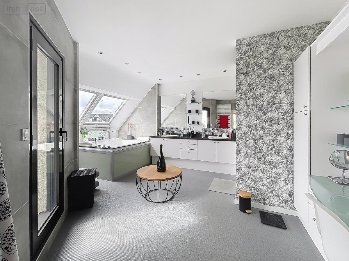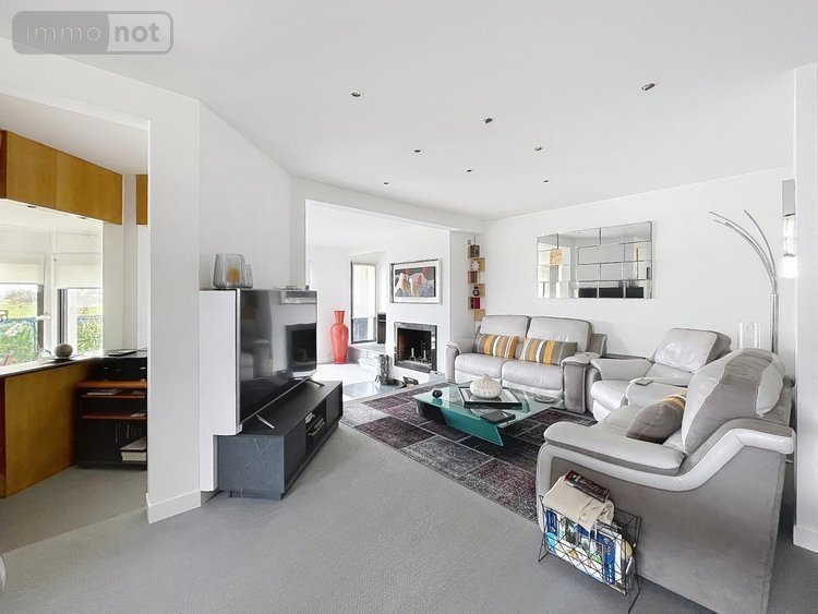 . Au RDC : entrée, cuisine AE, salon-séjour/salle à manger avec cheminée (66 m²), 2 chambres avec salle de bains communicante, Wc séparé