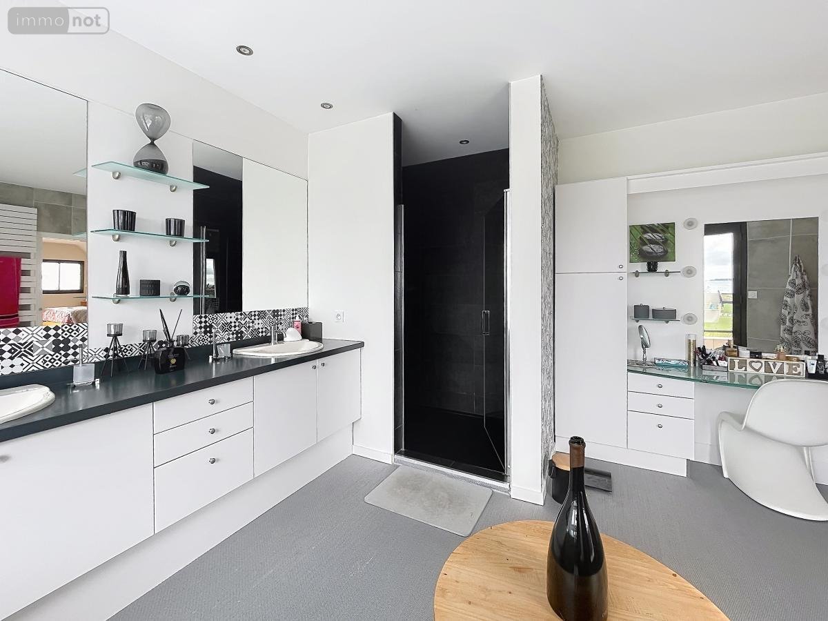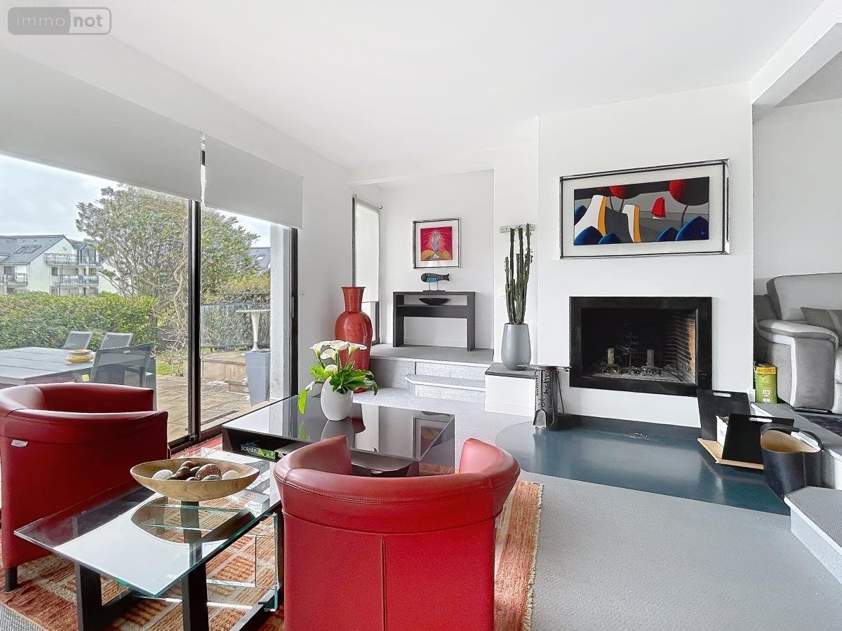 LOCQUELTAS, belle maison d'architecte de 1993 de 188 m² hab. avec VUE MER et VUE sur ILE DE GROIX comprenant :