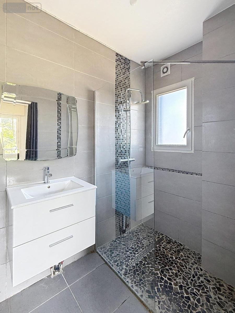 . RDC surélevé : entrée, cuisine ouverte sur séjour-salon (37 m²) accès sur TERRASSE de 32 m² SUD/EST, 1 chambre (12 m²) avec salle d'eau privative, wc.