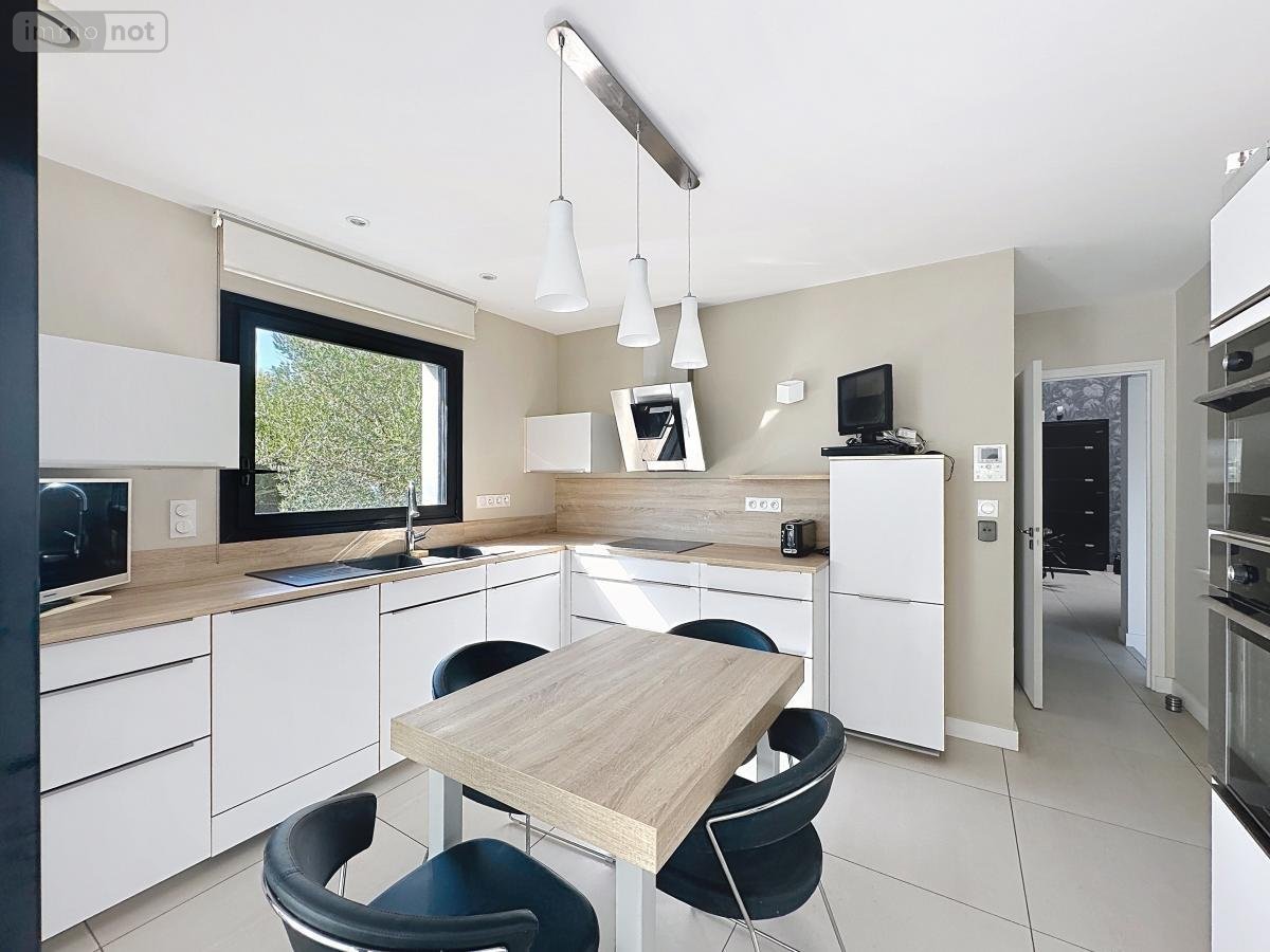 Au rez-de-chaussée : une entrée, un salon/séjour avec accès à la terrasse exposé Sud/Ouest, une cuisine ouverte sur la véranda, une suite parentale avec salle d'eau, dressing et terrasse, un bureau et un WC séparé