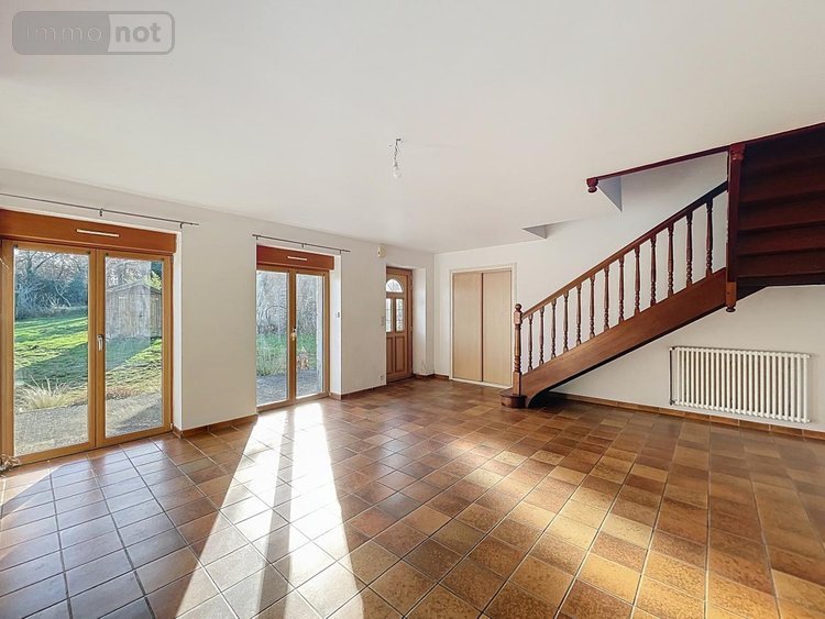 Elle se compose, au rez-de-chaussée, d'une pièce de vie avec grande cheminée en pierres, d'une cuisine aménagée et équipée, d'une chaufferie et de w.-c. A l'étage, un dégagement dessert 3 chambres, une salle de bains et un w.-c. indépendant.