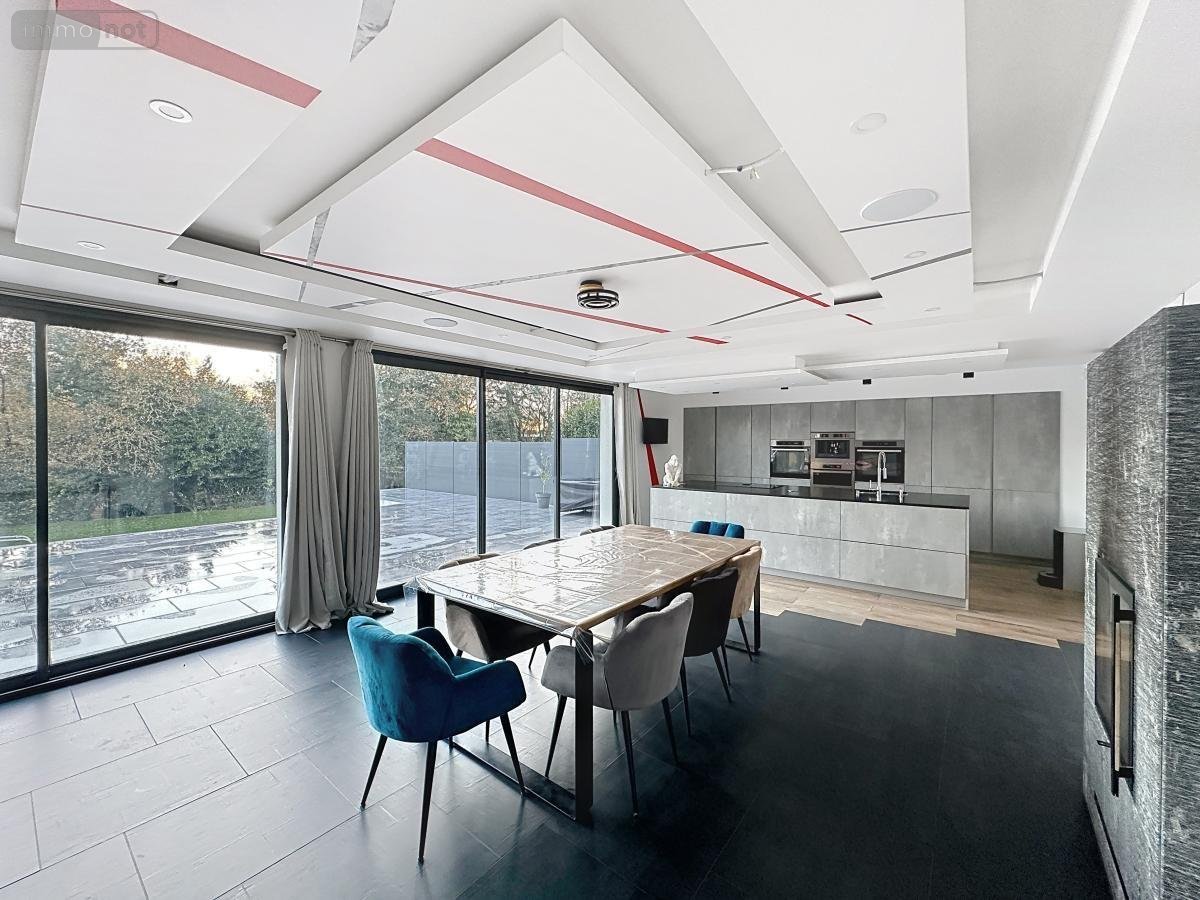 Au 1er étage : une cuisine ouverte sur le salon/séjour d'une surface totale de 80 m², un dégagement, un WC séparé,