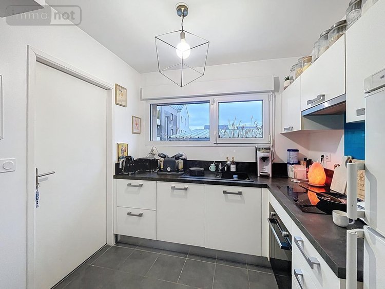 Elle se compose, au rez-de-chaussée, d'une entrée avec placard, un double salon-séjour, une cuisine aménagée et équipée, un cellier et une salle de bains avec w.-c.