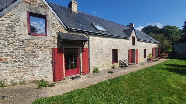 PLOURAY (Morbihan) : Maison d'habitation en pierres dans hameau en campagne dont la distribution est la suivante : - Rez-de-chaussée : cuisine aménagée et équipée, cellier, salle à manger ouverte sur salon, salle d'eau (douche, lavabo), WC, une pièce avec point d'eau - Etage : - 1ère partie : deux chambres - 2ème partie : bureau, une chambre - Hangar - Jardin Maison éligible à la fibre. Le tout sur 3 390 m² Les informations sur les risques auxquels ce bien est exposé sont disponibles sur le site Géorisques : www. georisques. gouv. fr