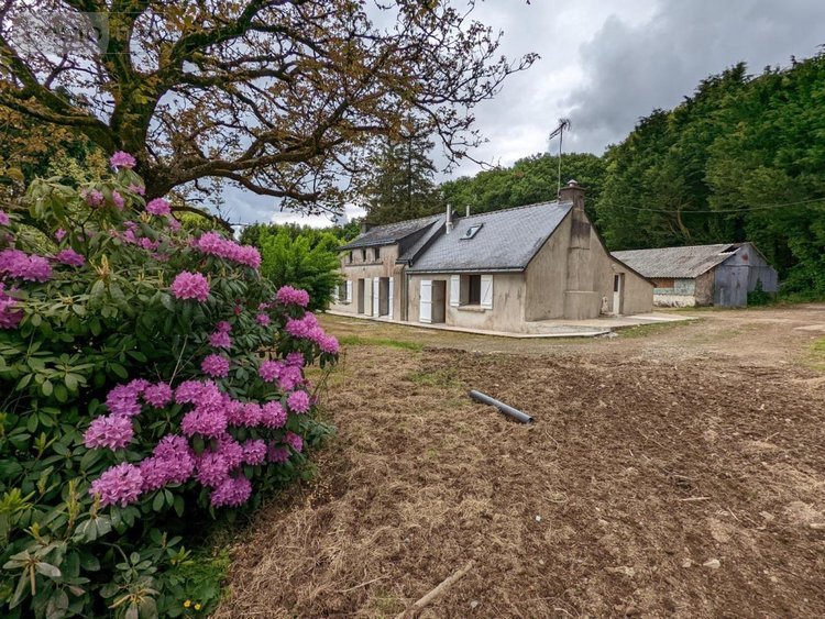 GOURIN (Morbihan) - Maison d'habitation à rénover en campagne dont la distribution est la suivante : - Sous-sol : cave sous partie du séjour - Rez-de-chaussée : séjour (cheminée avec insert), cuisine, salon (poêle à bois), une chambre, buanderie, cellier, salle de bain (baignoire, lavabo), 2 WCs - Etage : - 1ère partie : grenier - 2ème partie : deux chambres - Dépendances : chenil, hangar, atelier - Terrain attenant Les informations sur les risques auxquels ce bien est exposé sont disponibles sur le site Géorisques : www. georisques. gouv. fr