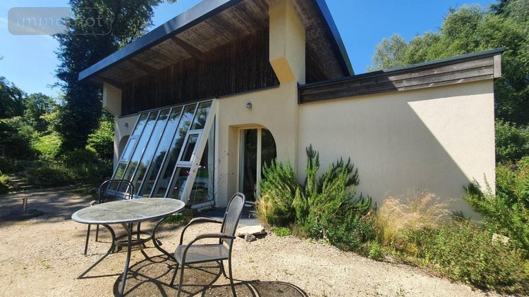 PLOURAY (Morbihan) - Maison d'habitation de plain-pied dans écovillage comprenant : hall d'entrée (placard), cuisine aménagée et équipée ouverte sur séjour (poêle à bois), bureau, deux chambres, WC avec lave-mains, salle de bain (baignoire, meuble + 2 vasques, WC), buanderie avec douche ; appentis à l'arrière ; jardin paysager ; Le tout sur environ 900 m² Exposition Sud ; environnement paisible ; écovillage de 9 habitations Les informations sur les risques auxquels ce bien est exposé sont disponibles sur le site Géorisques : www. georisques. gouv. fr