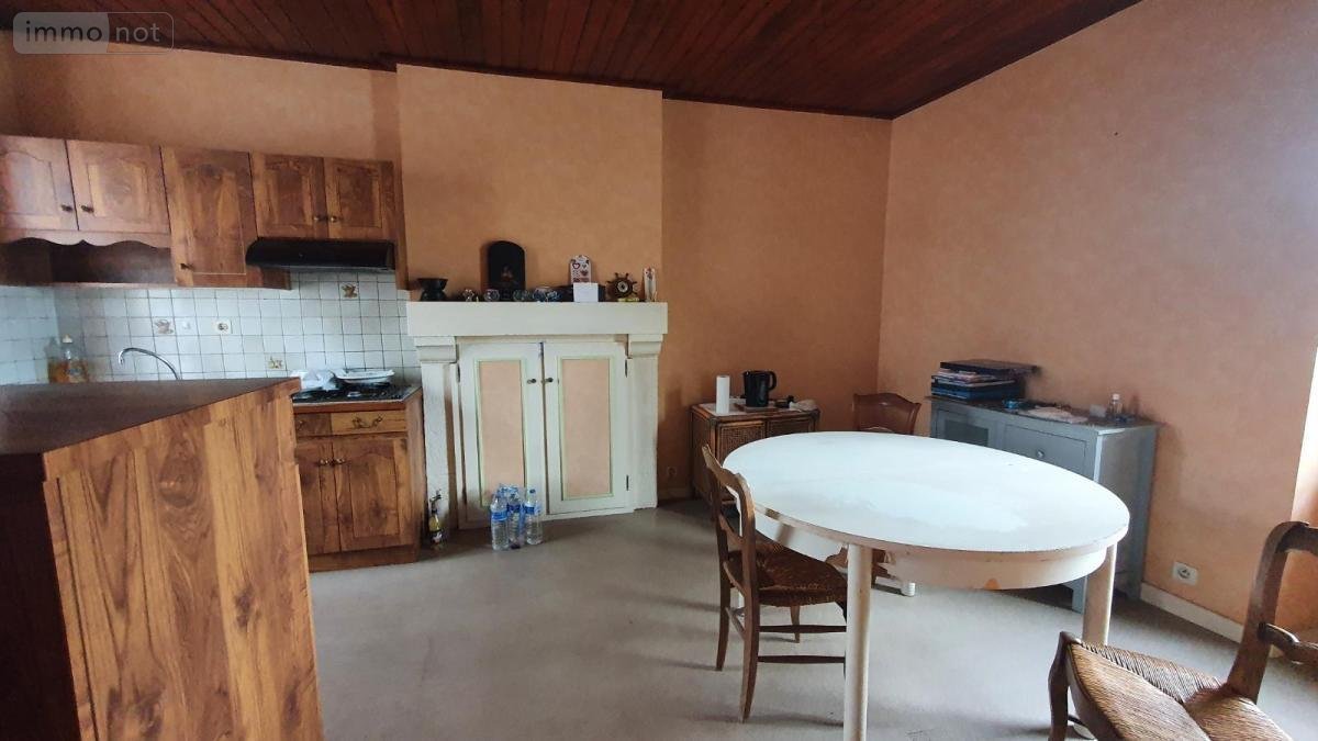GOURIN (Morbihan) - Maison d'habitation proche centre-ville dont la distribution est la suivante : - Sous-sol complet : chaufferie-buanderie - Rez-de-chaussée : cuisine (cheminée), salon, salle d'eau (cabine de douche, lavabo, WC) - Etage : deux chambres - Jardin clos à l'arrière Le tout sur 161 m² Les informations sur les risques auxquels ce bien est exposé sont disponibles sur le site Géorisques : www. georisques. gouv. fr