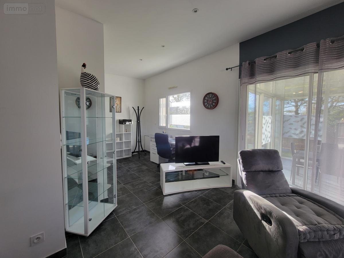 Maison d'habitation de plain-pied dont la distribution est la suivante : cuisine aménagée et équipée ouverte sur séjour, véranda, deux chambres avec placard, salle d'eau avec WC, cellier-buanderie-chaufferie ; carport ; Jardin