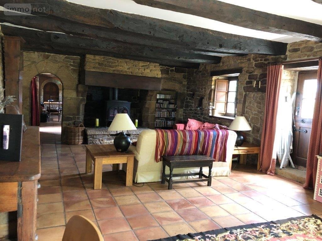 - Au rez-de-chaussée : hall d'entrée avec placards, cuisine-salle à manger aménagée et équipée avec poêle à bois, salon avec belle cheminée en pierres équipée d'un poêle à bois depuis laquelle il y a une belle vue sur le terrain par la fenêtre en forme de voûte, salle d'eau (douche) et wc séparé, autre grande pièce à usage de buanderie équipée d'eau et d'électricité dans laquelle il est possible d'aménager une chambre et salle de bains privative.