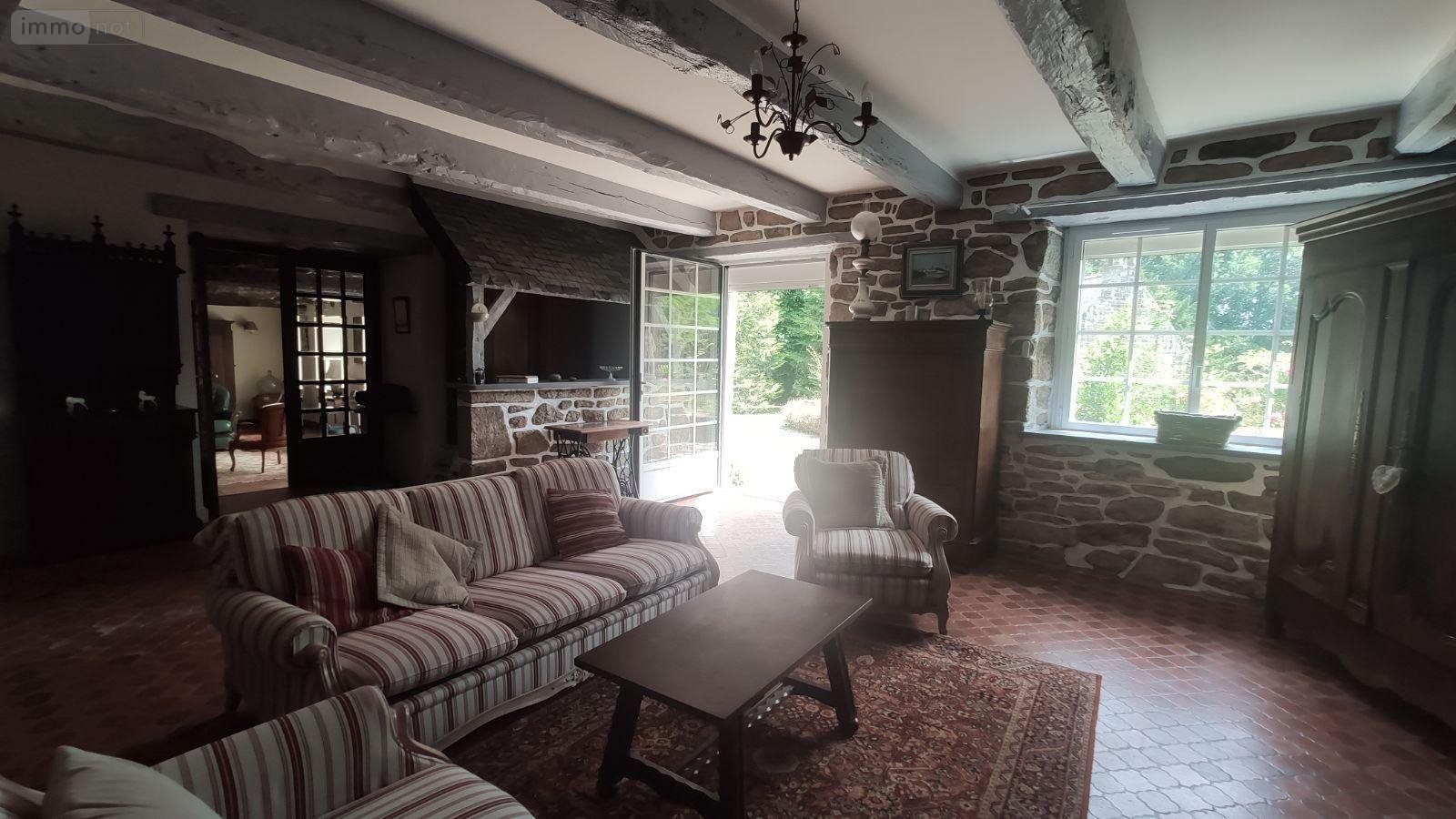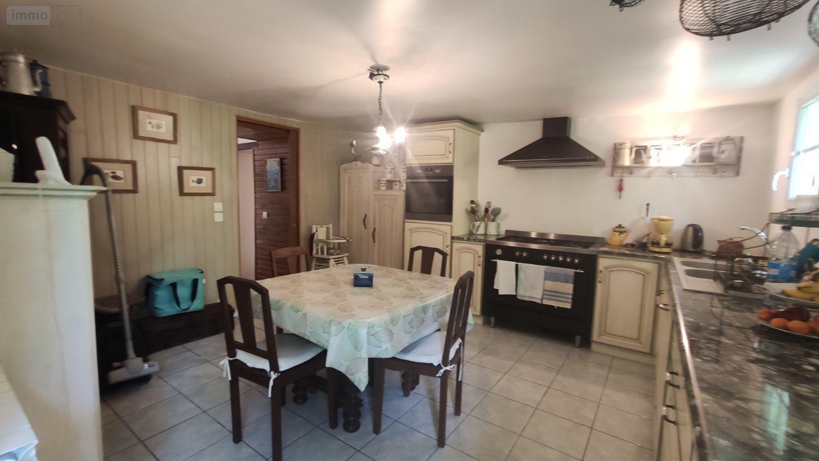 - Au rez-de-chaussée : Salle à manger-salon avec cheminée (foyer ouvert), autre séjour, cuisine à l'arrière aménagée, salle d'eau (douche) et WC.