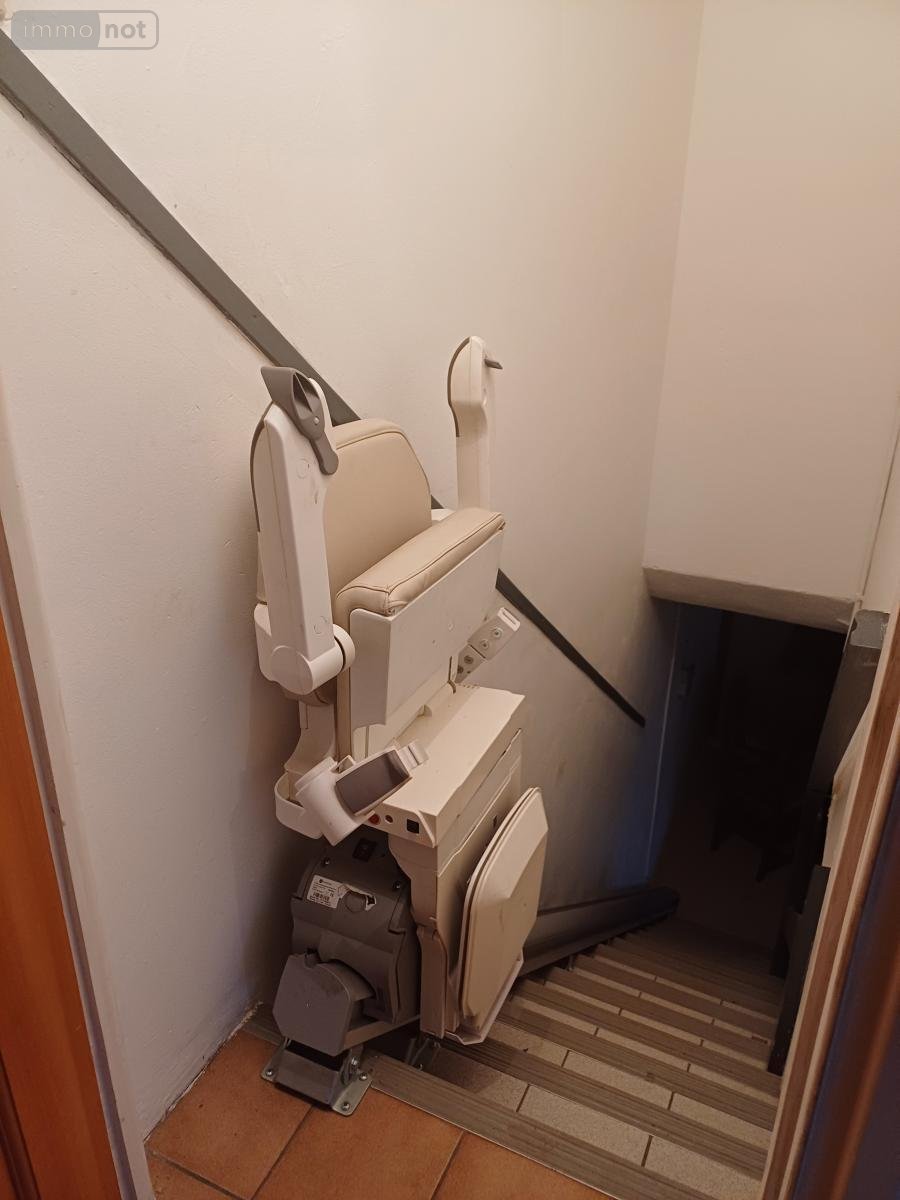 - Au rez-de-chaussée surélevé avec monte escalier électrique : entrée, cuisine aménagée et équipée, séjour avec cheminée, dégagement, salle d'eau, trois chambres et toilettes.