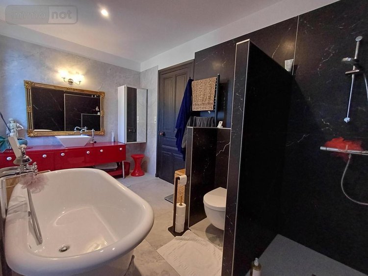 - au 1er étage : dégagement, deux chambres avec dressing, une salle de bains avec toilettes et une salle d'eau avec toilettes ;