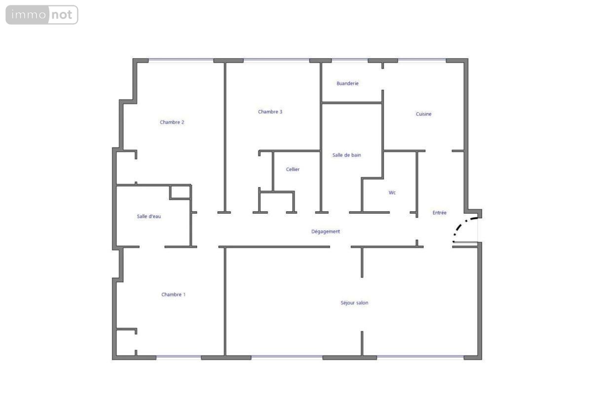 Il se compose d'une entrée, cuisine avec cellier, vaste séjour salon exposé au sud et sans vis-à-vis, 3 chambres dont une très spacieuse avec salle d'eau (douche + W.C.), salle de bains, buanderie et W.C. séparé.