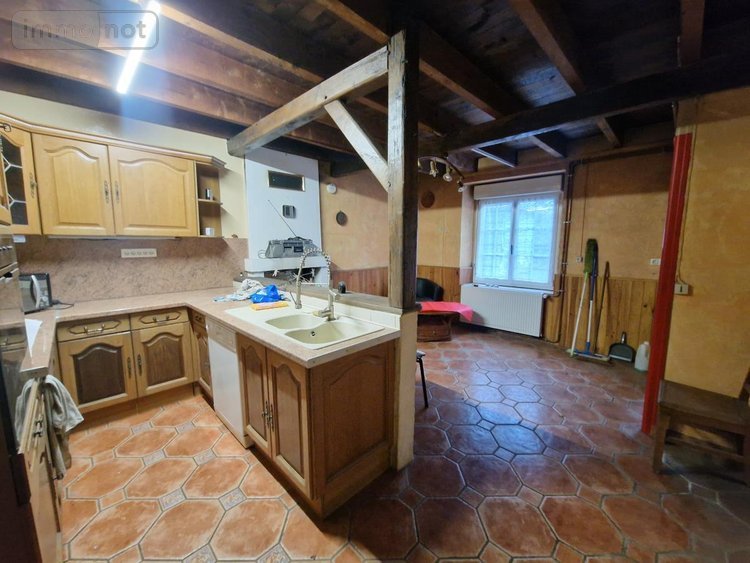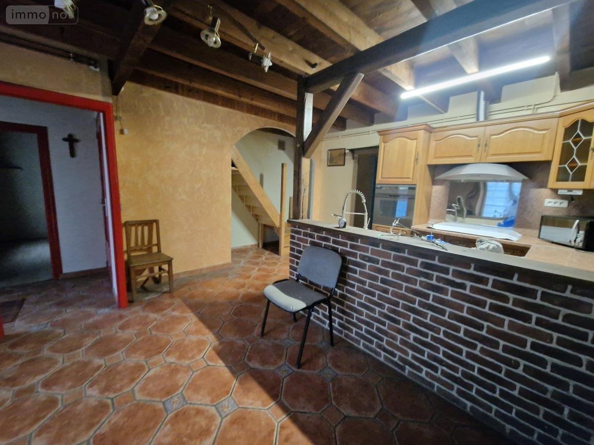 - rez-de-chaussée : entrée, cuisine aménagée ouverte sur coin repas avec cheminée ouverte, séjour-salon, dégagement, salle d'eau avec coin buanderie, wc, chaufferie,