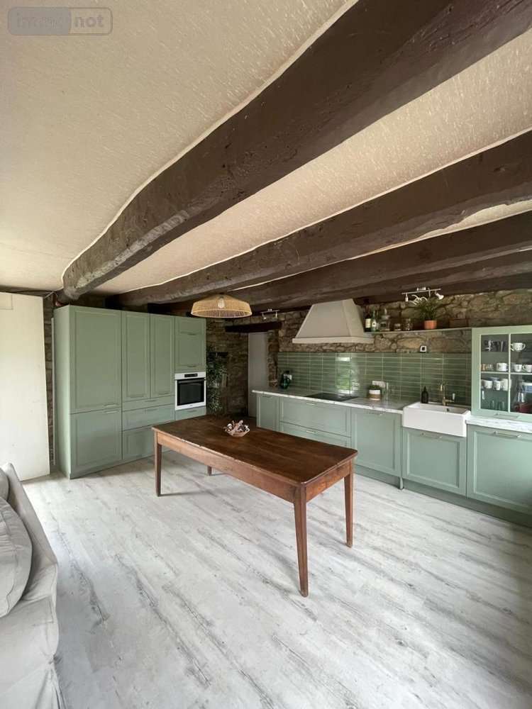 - rez-de-chaussée : cuisine aménagée ouverte sur salon avec poêle à bois, séjour, une chambre, salle d'eau-wc, dégagement, une chambre avec salle d'eau privative, couloir, deux chambres, wc,