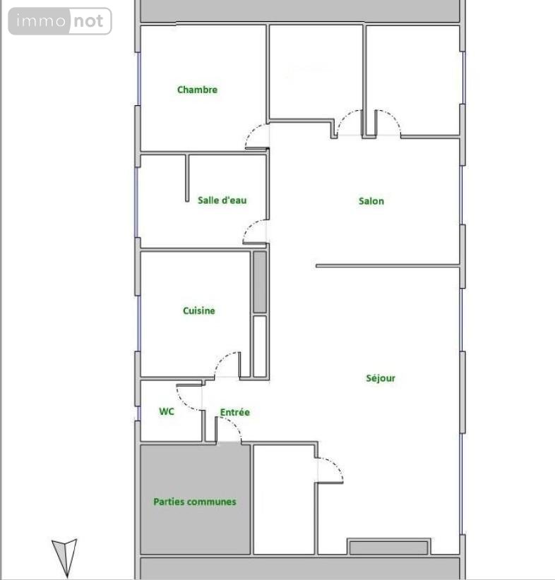 - entrée, salle à manger-séjour avec balcon, débarras, wc avec lavabo, cuisine aménagée avec placard, salon, salle d'eau avec coin buanderie, un bureau, dressing, une chambre,