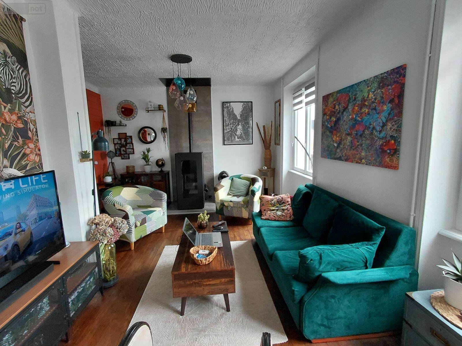 Au rez-de-chaussée, vous découvrirez une cuisine aménagée et équipée ouverte sur un salon chaleureux, agrémenté d'un poêle à pellets, idéal pour un confort optimal au quotidien.