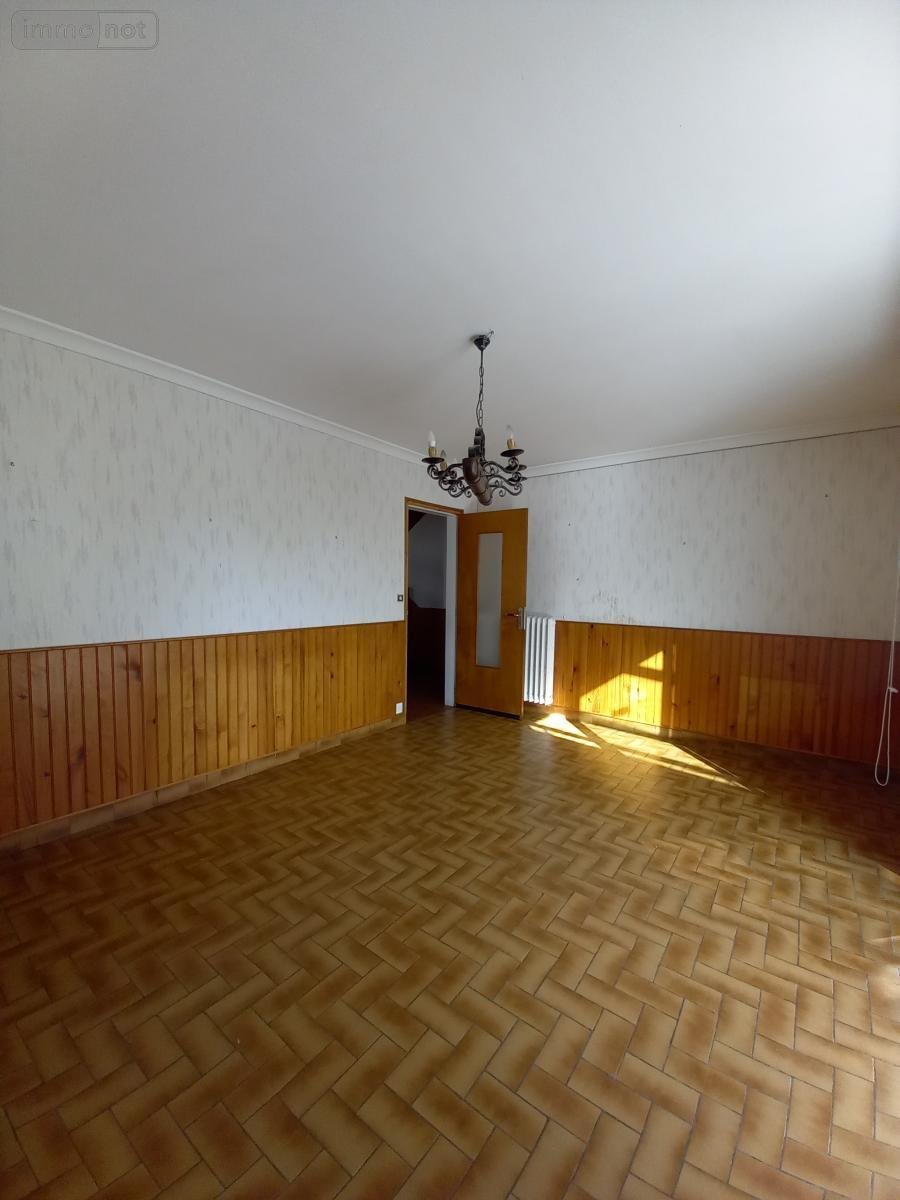 rez-de-chaussée : entrée, cuisine, salle à manger, séjour avec cheminée, deux chambres et sanitaires.