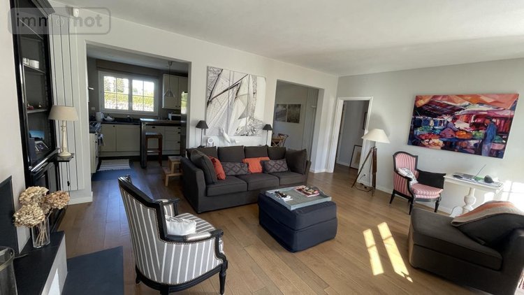 • au RDC : Salon avec cheminée, cuisine ouverte sur salle à manger, une chambre avec sa salle d'eau + WC, vestiaires, WC . Garage avec buanderie