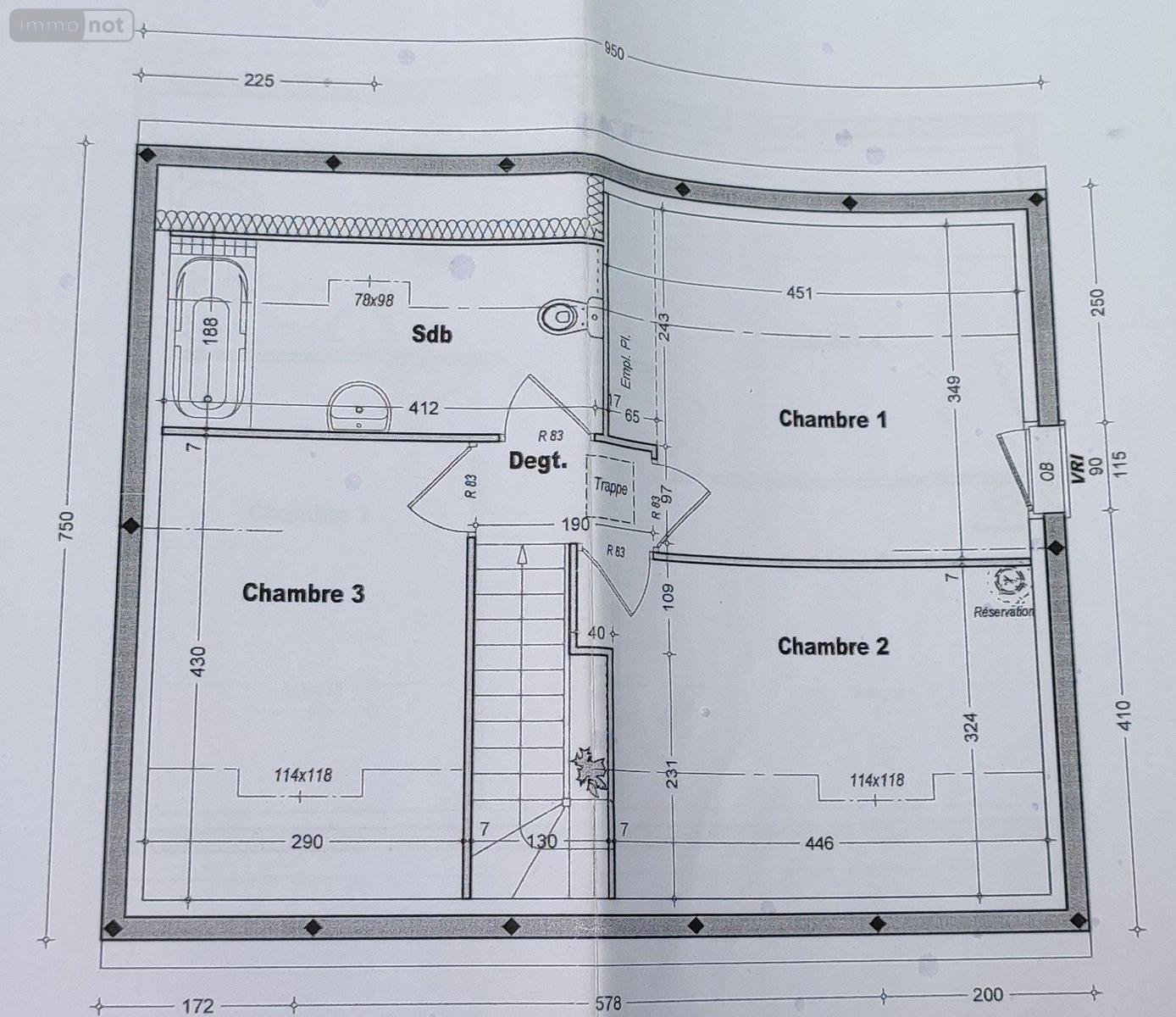 Sur terrain constructible de 990 m², pavillon indépendant de Type 4, comprenant séjour avec coin cuisine, W.C. avec lave-mains, garage. Etage de 3 chambres, salle de bains, W.C. jardin.