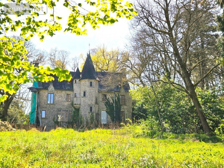 Situé à environ 45 minutes des plages, château à rénover, édifié au XIXe siècle, implanté dans un environnement verdoyant sur une parcelle d'environ 10 hectares (libre d'exploitant) comprenant prairies et bois. Bâtiment principal élevé sur deux niveaux d'environ 100 m² chacun, grenier mansardé aménageable, cave en sous-sol. Planchers en béton, ouvertures neuves, cheminées anciennes. Vaste dépendance (140 m² sol environ) comprenant garage et écuries, étage (89 m² sol env) avec plancher en béton. Deux puits présents sur la propriété.