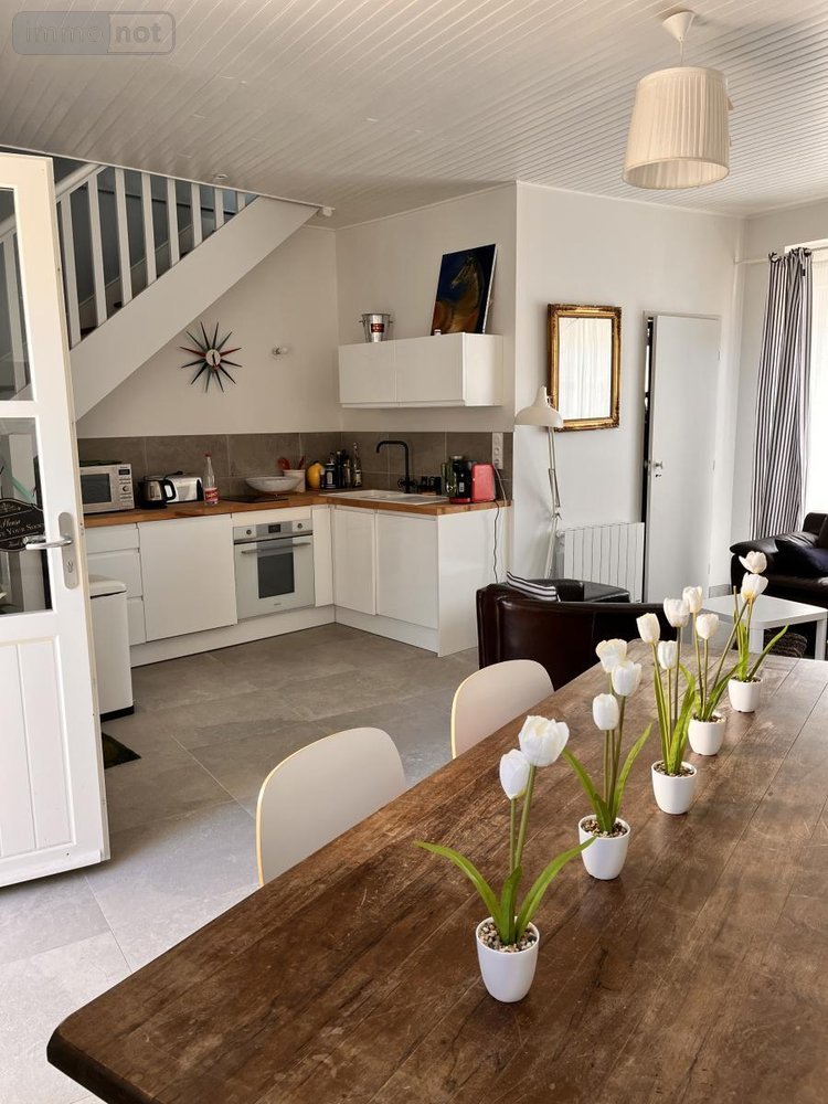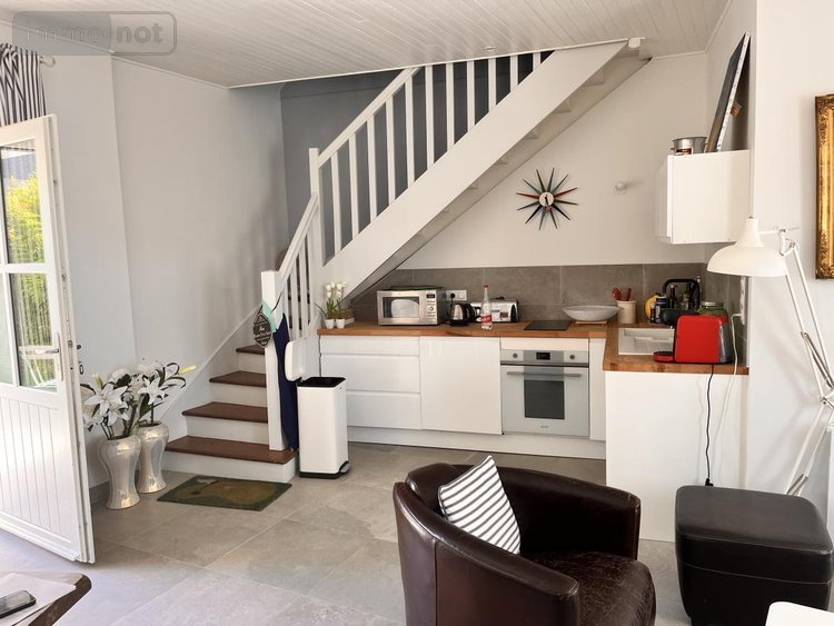 Adorable maison de ville joliment rénovée comprenant au rez de chaussée, une pièce de vie avec cheminée et cuisine ouverte, une salle d'eau avec wc.