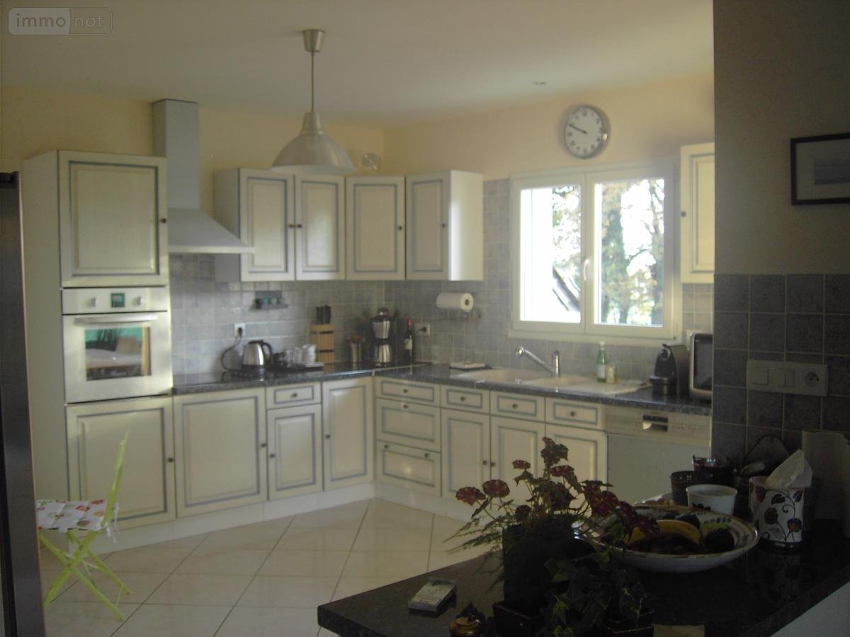 Au rez-de-chaussée : une entrée avec placard, une chambre avec placard, dressing et salle d'eau double vasque, un dégagement, un séjour salon de 49m² avec cheminée avec insert, une cuisine aménagée équipée (plaque hotte four), une terrasse exposée Sud et Est.