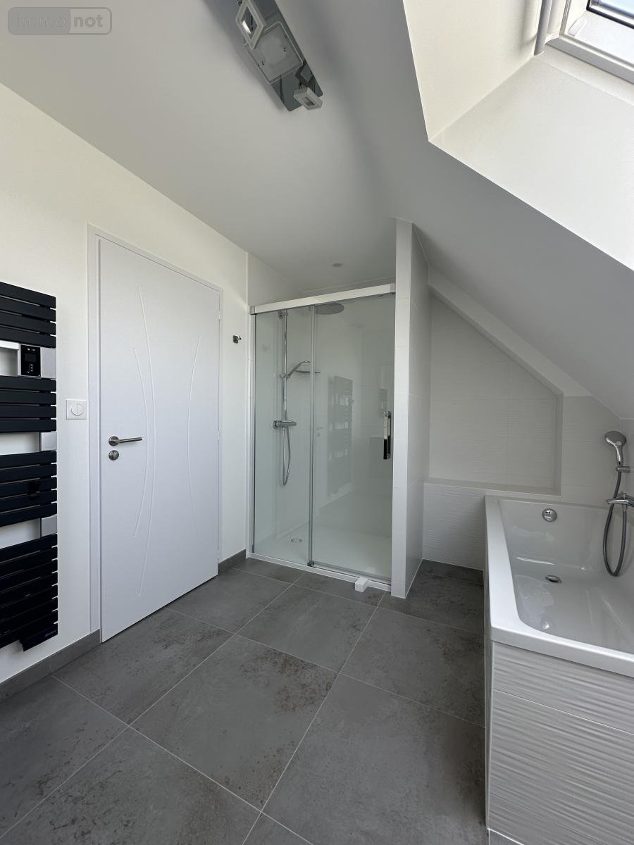Une salle de bains contemporaine ainsi qu'un WC indépendant .
