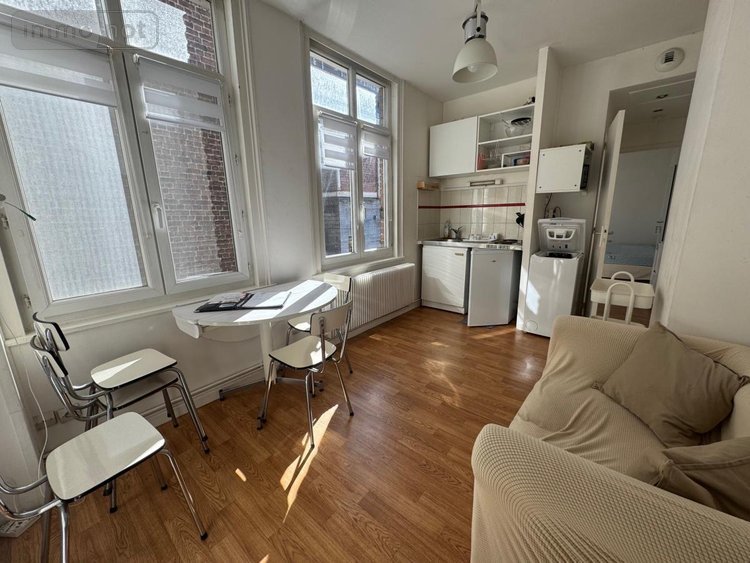 À louer lumineux type 1 bis meublé, situé au 2ème étage dans un immeuble sécurisé et bien entretenu, d'une surface de 23,54 m² habitable, il est composé d'un séjour, d'une cuisine ouverte, d'une salle de bains avec WC et un coin nuit. À proximité immédiate du parc Jean Baptiste Lebas.