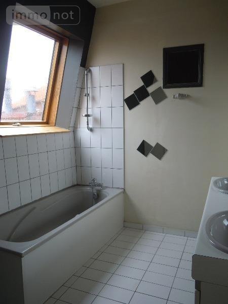 Sur la commune de GODEWAERSVELDE (Nord) : Rue du Général Devinck, maison à louer d'une surface de 77 m² habitables avec garage et cour, comprenant au RDC : entrée avec 2 grands placards, petit séjour, cuisine équipée, wc, et à l'étage : 3 chambres et salle de bains (2 lavabos et baignoire).