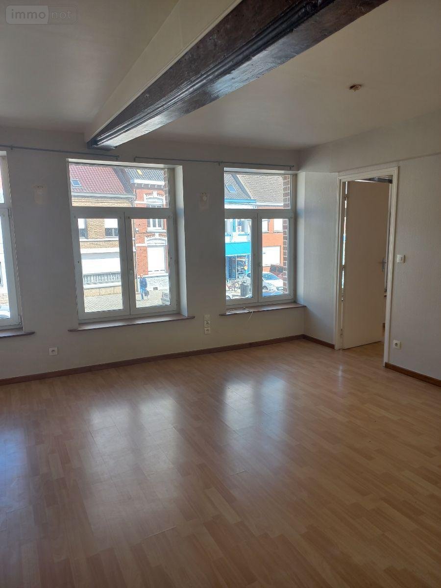 En plein centre de ville de STEENVOORDE, appartement d'environ 37 m², au 1 er étage sans ascenseur, comprenant : 1 pièce principale (séjour + cuisine ouverte) d'environ 20 m², 1 chambre , WC et salle de bain.