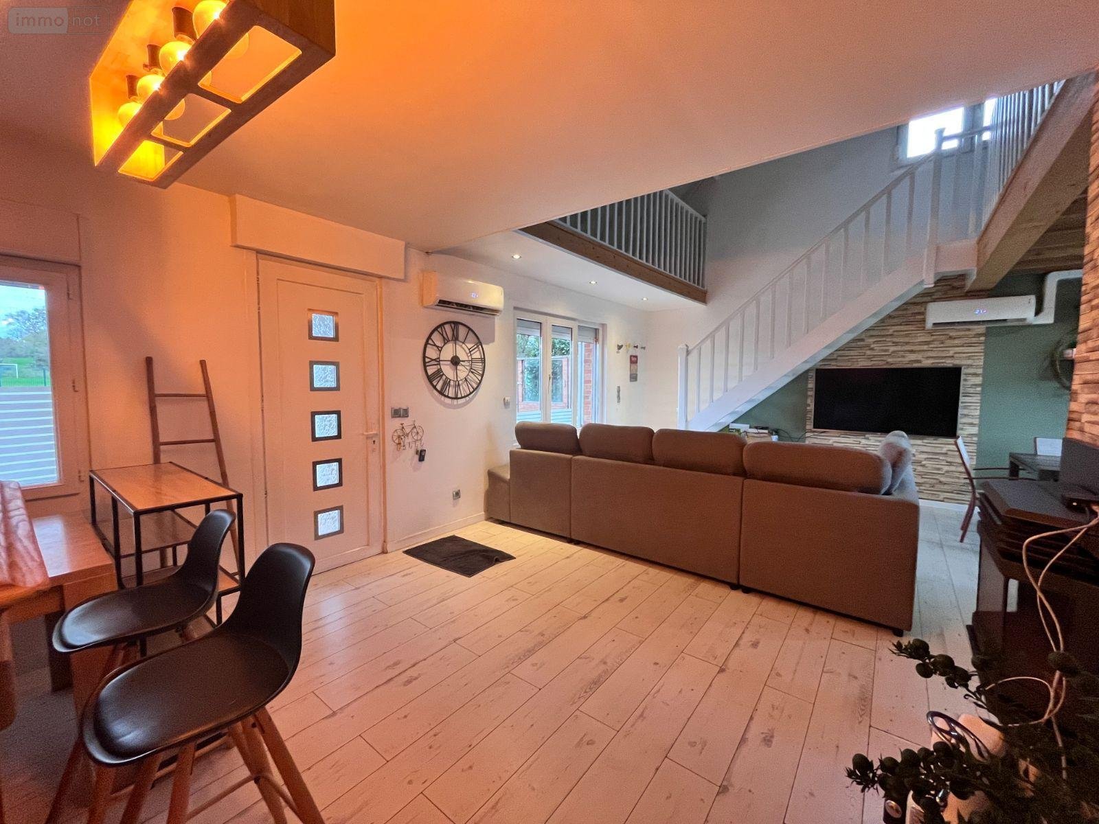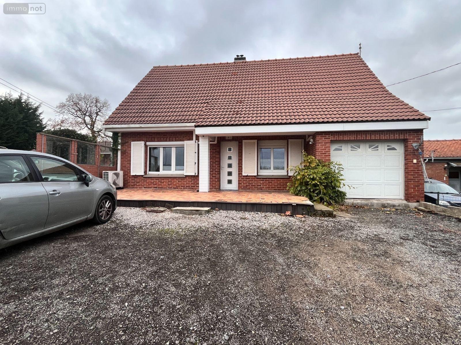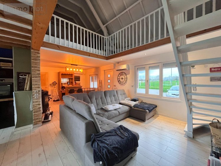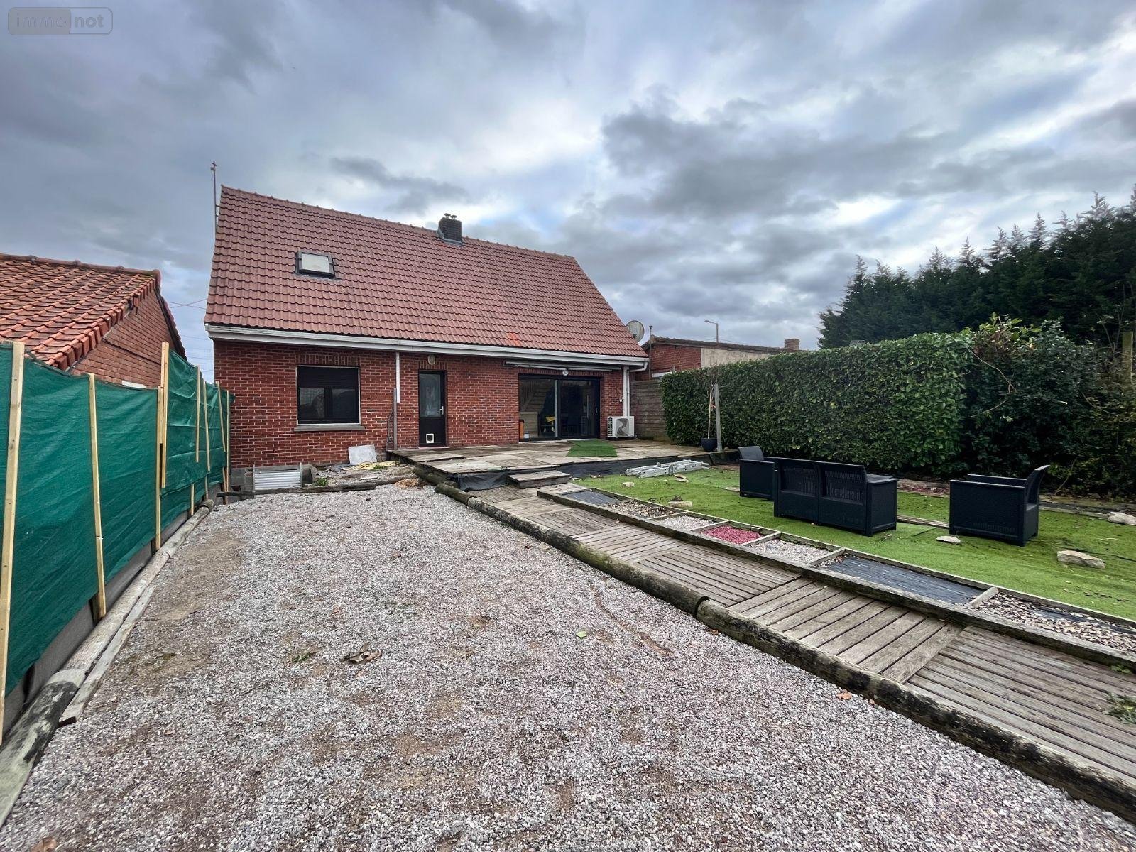 Maison à vendre à BOESCHEPE dans le Nord (59) - Charmant pavillon individuel de type semi plain-pied, implanté sur une parcelle de 507 m². Il offre une surface habitable d'environ 113 m². Au rez-de-chaussée séjour de 30 m² ouvert sur une cuisine équipée de 19 m², ainsi qu'une chambre et une salle de bains. À l'étage, un vaste palier distribue une grande chambre, avec la possibilité d'en aménager une seconde. La maison dispose également d'un parking, d'un garage, d'une PAC air/air, d'un insert à granulés et d'un ballon thermodynamique. Un bien avec un beau potentiel à découvrir sans tarder !
