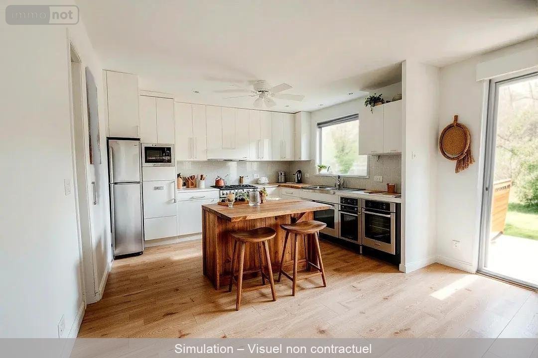 Cette maison neuve est équipée des nouvelle normes thermiques permettant une faible consommation d'énergie (chauffage par pompe à chaleur au sol au rez de chaussée, par radiateur hydraulique à l'étage, isolation des murs et de la toiture), le rez de chaussée est conforme aux normes PMR.