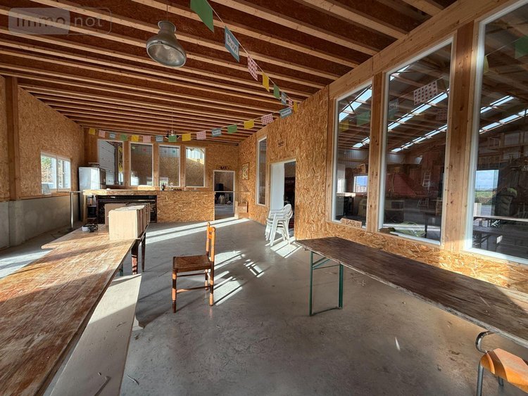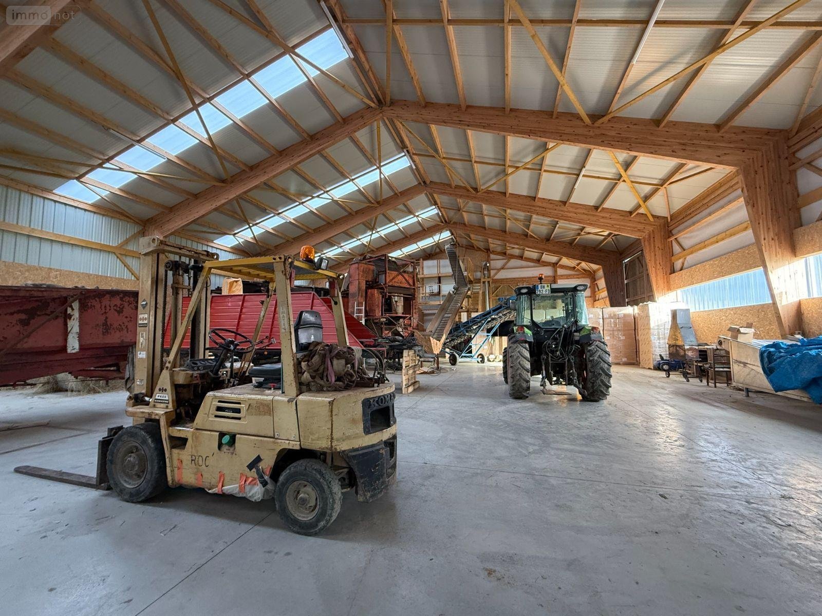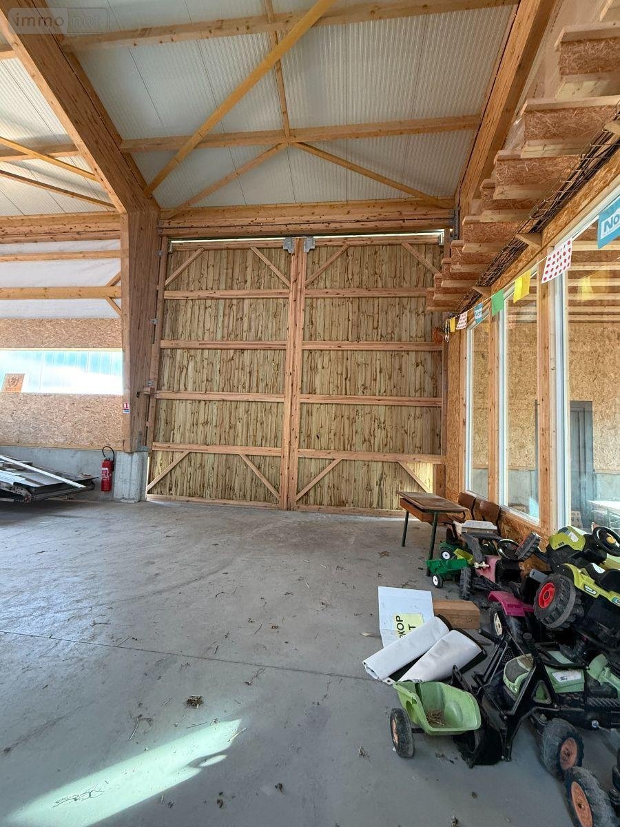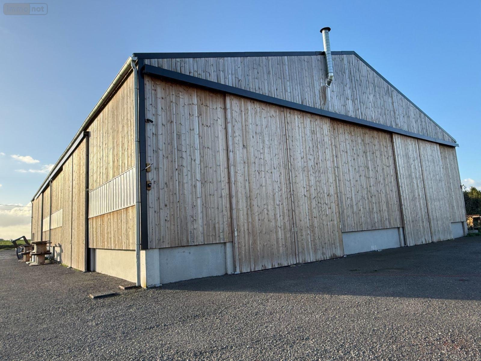 Erigé sur une parcelle de 2.313 m², très bel hangar entrepôt d'une superficie de 720 m², construit en 2023 en ossature bois, sur dalle béton, avec sous-bassement béton, bardage bois et menuiseries en PVC double vitrage