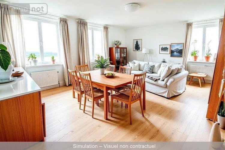 Il offre un hall, salon/séjour, une cuisine, un WC, une salle de bain, 3 chambres et un petit cellier.