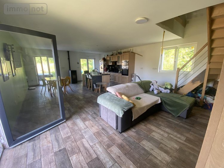 Pièce de vie ouvert sur cuisine équipée de 50 m² avec pellet et insert