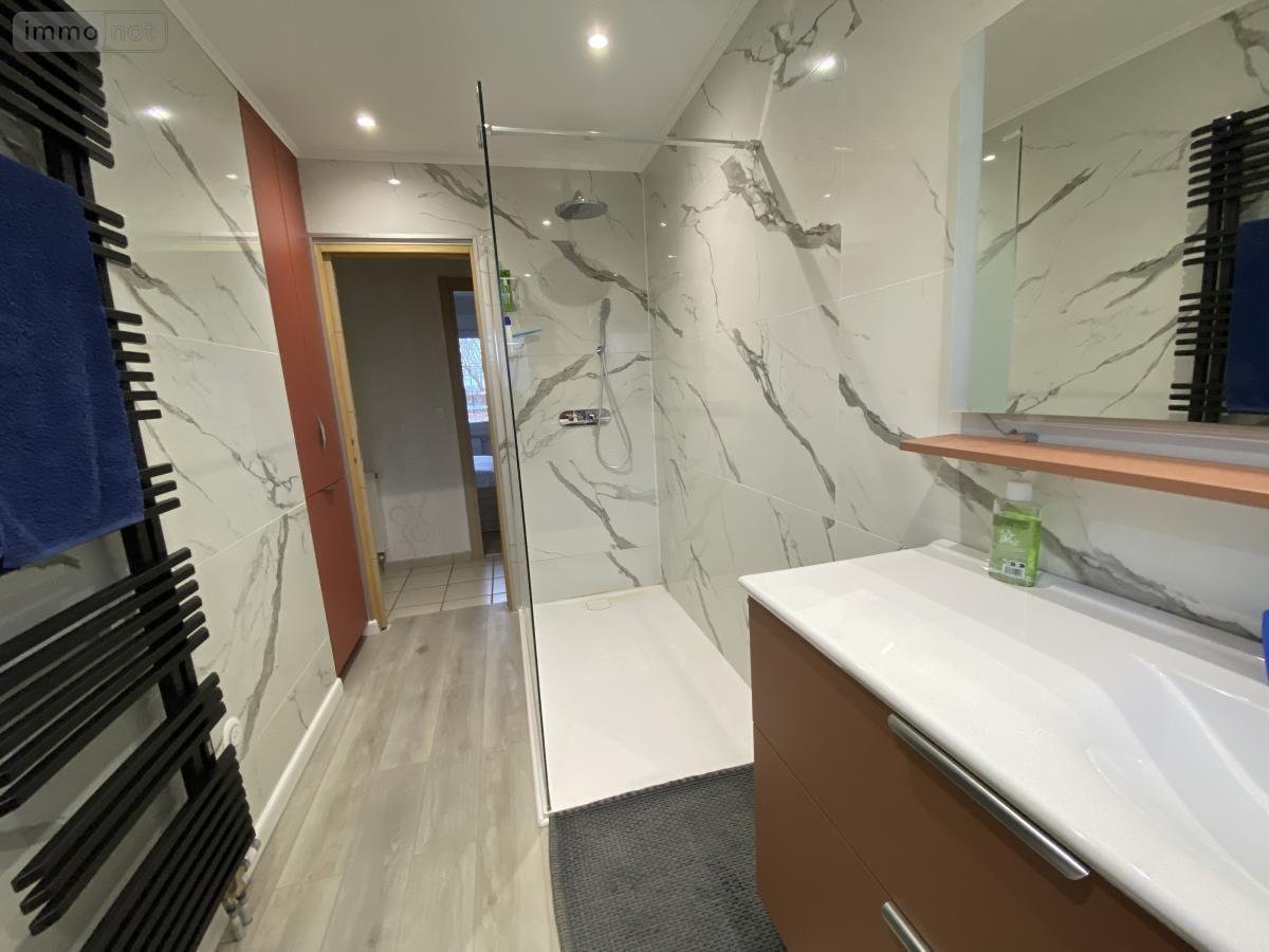 entrée sur pièce de vie de 47m²avec salon-séjour ouvert sur cuisine équipée moderne et fonctionnelle, 3 chambres 9,9 et 12m², salle de douches, wc.