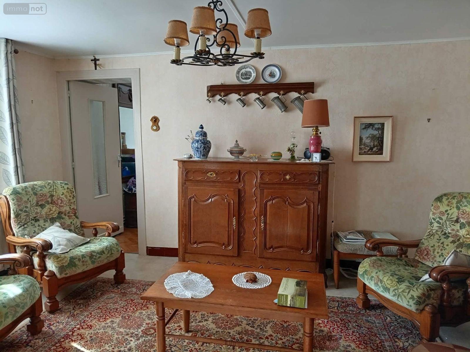 - au rez-de-chaussée : deux entrées, cuisine, salon, salle à manger, salle de bains avec wc, deux chambres, bureau, deux petites pièces;